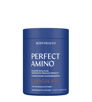 Het lichaam gebruikt aminozuren als bouwstenen voor eiwitten. Omdat het lichaam essentiële aminozuren niet zelf aanmaakt, haal je deze uit voeding. BodyHealth Perfect Amino Powder Chocolate is een eenvoudige manier om essentiële aminozuren te nemen.