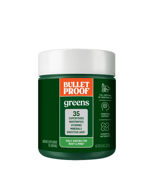 Bulletproof Greens is een supergreens poeder met 12 groentes/vruchten, 5 superfoods, paddenstoelen, nootropica, en spijsverteringsenzymen. Dagelijkse ondersteuning in een smakelijk drankje. 237 g voor 30 porties.