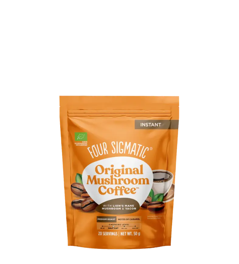 Four Sigmatic is een Amerikaans bedrijf dat voedingsproducten en supplementen met paddenstoelenextracten produceert. Ze combineren paddenstoelenextracten met hoogwaardige koffie, cacao en kruiden, zodat je makkelijk een vorm en dosering vindt die bij je past. Ze gebruiken geavanceerde extractiemethoden en geven waar mogelijk de voorkeur aan biologische ingrediënten.