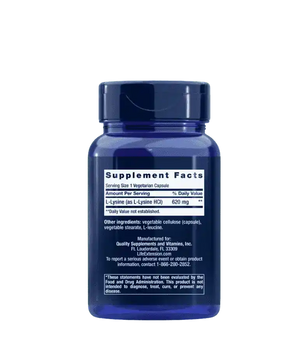 Life Extension L-Lysine bevat 620 mg L-lysine per capsule. Essentieel aminozuur voor dagelijks gebruik. 100 capsules.