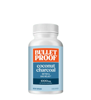Bulletproof Coconut Charcoal bevat zeer fijne actieve koolstof uit kokosschillen. Bindt schadelijke stoffen in voeding. 90 capsules voor 45 porties.