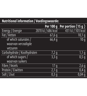MCT poeder lost goed op in dranken en is daarom perfect als toevoeging aan gebak of dranken zoals smoothies en koffie. Een portie van 15 gram bevat 7,4 gram MCTs.