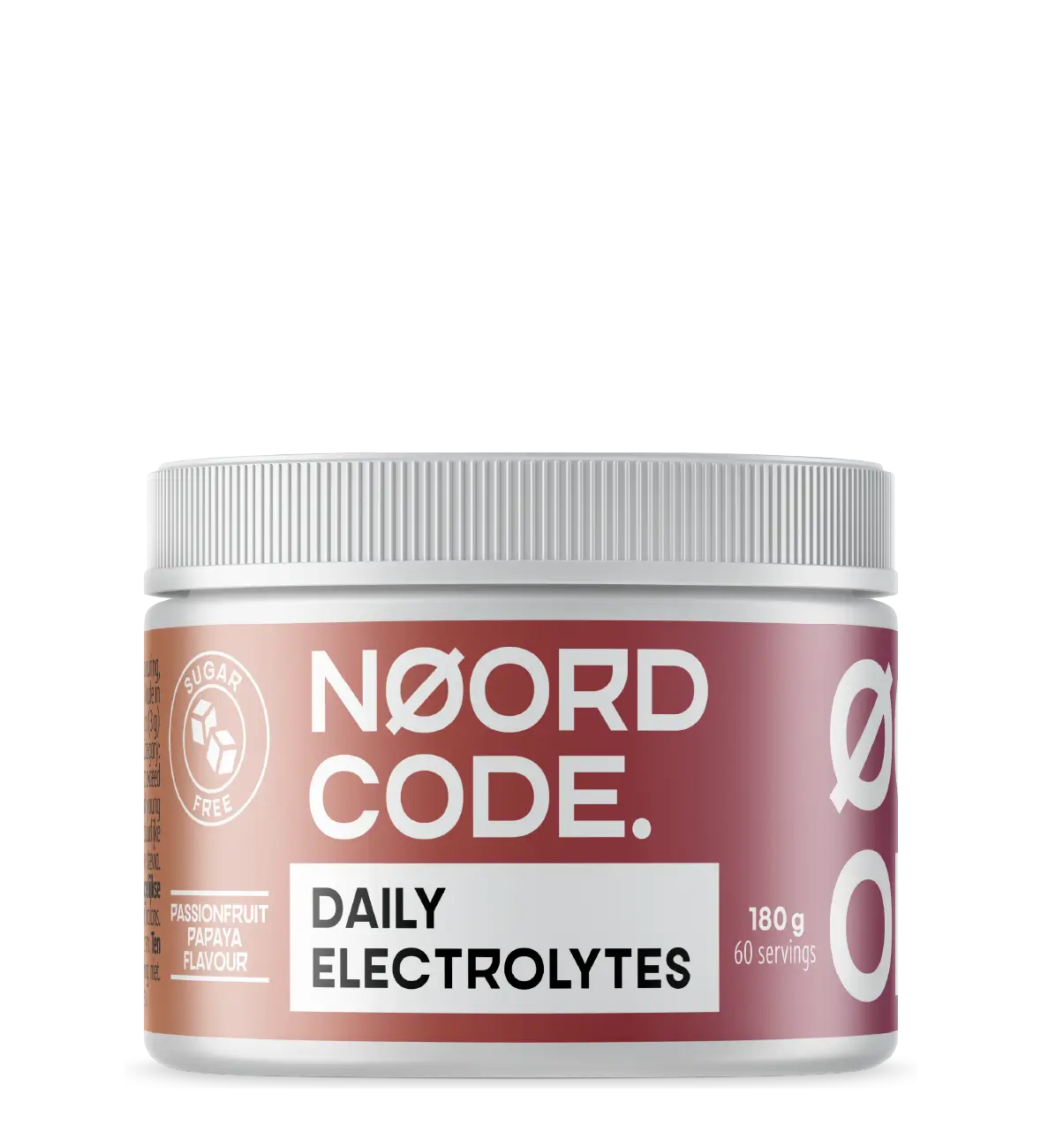 NoordCode Daily Electrolytes Passionfruit Papaya is suikervrij elektrolytes poeder geschikt voor dagelijks gebruik. 350 mg kalium, 100 mg magnesium en 35 mg natrium per portie in biobeschikbare vormen. Een subtiele smaak van water met een infusie van tropisch fruit. Pot van 180 g voor 60 porties.