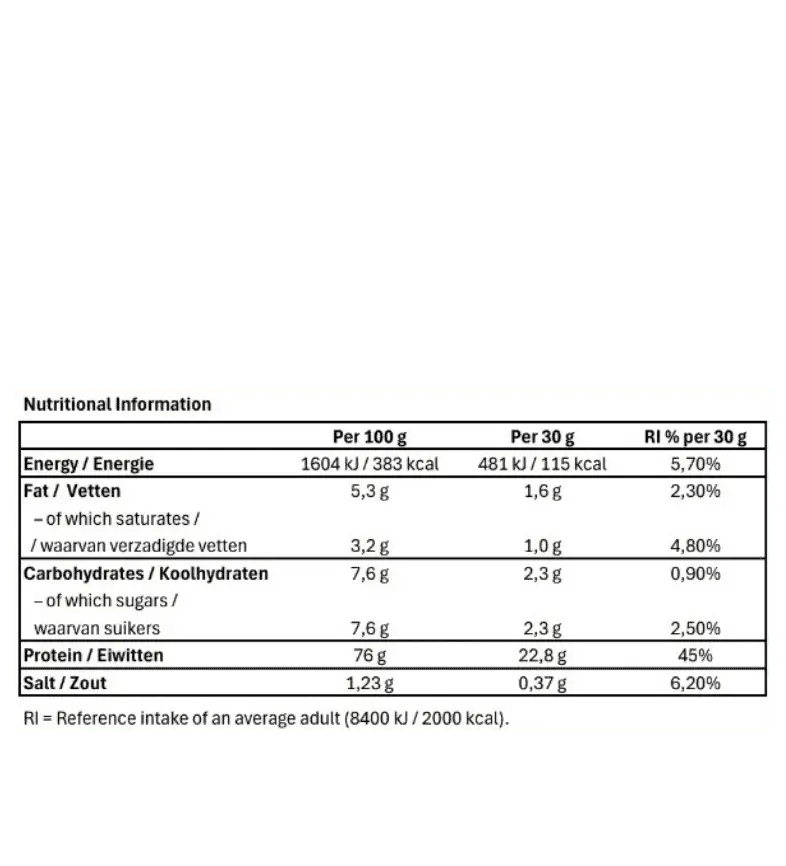 Pure Whey bevat geen smaakstoffen of andere toevoegingen. Dit maakt het een veelzijdig product dat je op elke gewenste manier kunt gebruiken.
