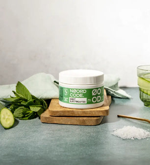NoordCode Daily Electrolytes Cucumber Mint is een electrolytespoeder dat is geformuleerd voor de dagelijkse aanvulling van mineralen. Het bevat zorgvuldig samengestelde hoeveelheden kalium, magnesium, natrium, chloride en sporenelementen die passen bij ieders voedingspatroon. De electrolytendrank heeft een subtiele komkommer muntsmaak en is suikervrij.