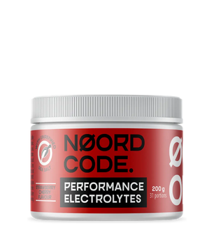 De focus van NoordCode Performance Electrolytes Strawberry Cherry ligt op het aanvullen van natrium en chloride. Deze elektrolyten gaan het meest verloren via zweet en urine. Natrium en chloride zijn de twee onderdelen van zout (natriumchloride). Je kan ze daarom makkelijk aanvullen door zout te nemen.
