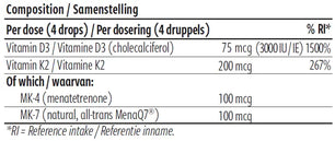 - 200 mcg vitamine K2 (267% RI*) waarvan: