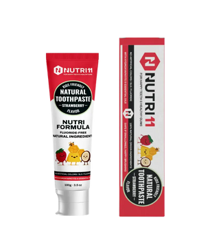 Nutri11 Kids Natural Toothpaste is speciaal ontwikkeld voor kinderen, met een milde, fluoridevrije formule en een heerlijke natuurlijke aardbeiensmaak.